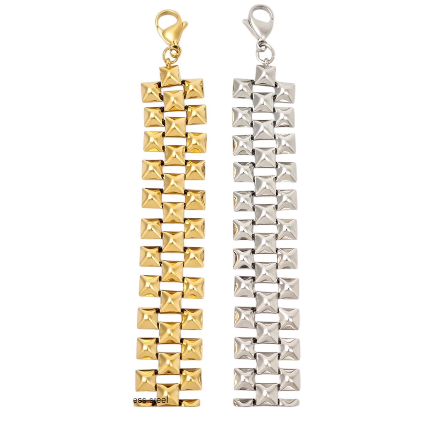 Το βραχιόλι είναι φτιαγμένο από χειρουργικό ατσάλι, εξαιρετικά ανθεκτικό και διπλά επιχρυσωμένο για να προσφέρει μια λαμπερή και πολυτελή εμφάνιση. Η επιχρύσωση του δεν ξεθωριάζει και δεν φθείρεται με την καθημερινή χρήση, κάνοντάς το ιδανικό για να το φοράτε όλη μέρα χωρίς να ανησυχείτε για αλλεργίες ή ερεθισμούς. Το χειρουργικό ατσάλι είναι γνωστό για την αδιάβροχη και ανθεκτική φύση του, διασφαλίζοντας ότι το βραχιόλι παραμένει αμετάβλητο και άθικτο ακόμα και στις πιο απαιτητικές συνθήκες. Είναι τέλειο για καθημερινή χρήση, με κομψό και σύγχρονο σχέδιο που μπορεί να συνδυαστεί εύκολα με κάθε στυλ και εμφάνιση.