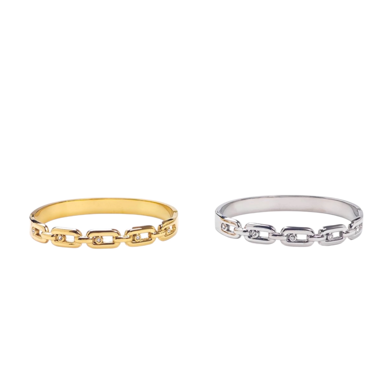 Το βραχιόλι είναι φτιαγμένο από χειρουργικό ατσάλι, εξαιρετικά ανθεκτικό και διπλά επιχρυσωμένο για να προσφέρει μια λαμπερή και πολυτελή εμφάνιση. Η επιχρύσωση του δεν ξεθωριάζει και δεν φθείρεται με την καθημερινή χρήση, κάνοντάς το ιδανικό για να το φοράτε όλη μέρα χωρίς να ανησυχείτε για αλλεργίες ή ερεθισμούς. Το χειρουργικό ατσάλι είναι γνωστό για την αδιάβροχη και ανθεκτική φύση του, διασφαλίζοντας ότι το βραχιόλι παραμένει αμετάβλητο και άθικτο ακόμα και στις πιο απαιτητικές συνθήκες. Είναι τέλειο για καθημερινή χρήση, με κομψό και σύγχρονο σχέδιο που μπορεί να συνδυαστεί εύκολα με κάθε στυλ και εμφάνιση.